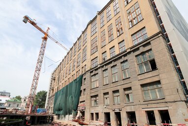 Реставрация фасада здания Центрального телеграфа и советского герба над главным входом