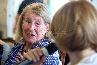 Правнучка Льва Толстого Марта Альбертини во время встречи и презентации своей книги «Две Татьяны. Дочь и внучка Льва Толстого» в Ампирном зале Государственного музея Толстого.