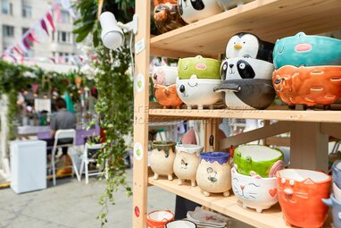 Керамические кашпо в виде кошек. Фестиваль «Ешь. Гуляй. Дыши» в рамках проекта «Лето в Москве» на Тверском бульваре и на Тверской площади.