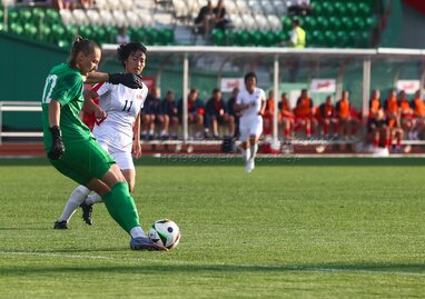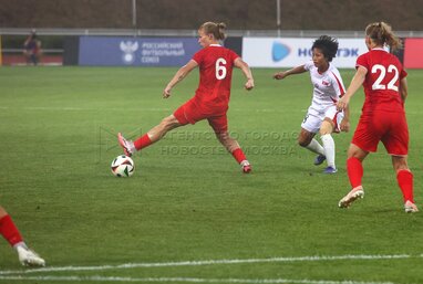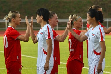 Товарищеский футбольный матч женских национальных сборных команд России и Корейской Народно-Демократической Республики (КНДР) на стадионе «Москвич».