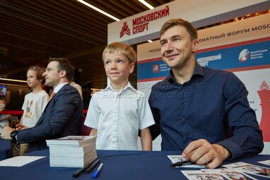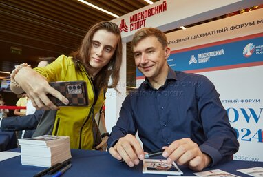 Автограф-сессия и сеанс одновременной игры Сергея Карякина и Эрнесто Инаркиева на Moscow Open 2024