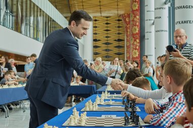 Гроссмейстер Сергей Карякин. Автограф-сессия и сеанс одновременной игры гроссмейстеров Сергея Карякина и Эрнесто Инаркиева в рамках международного шахматного форума Moscow Open 2024 во Дворце Ирины Винер.