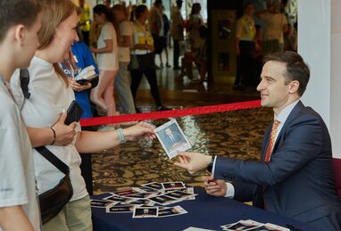 Автограф-сессия и сеанс одновременной игры гроссмейстеров Сергея Карякина и Эрнесто Инаркиева в рамках международного шахматного форума Moscow Open 2024 во Дворце Ирины Винер.