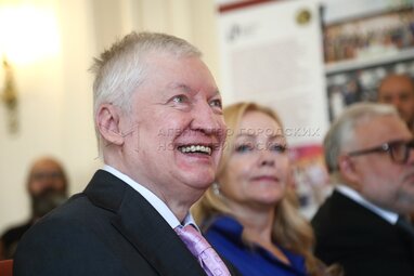 Чемпион мира по шахматам Анатолий Карпов (на первом плане). Торжественное вручение государственных наград шахматистам РФ – медалей в честь 100-летия министерства спорта России и золотых знаков Федерации шахмат России – в Центральном доме шахматиста имени Ботвинника.