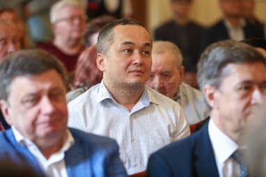 Президент Федерации шахмат Астраханской области, член Наблюдательного Совета Федерации шахмат России Ренат Бигалиев. Торжественное вручение государственных наград шахматистам РФ – медалей в честь 100-летия министерства спорта России и золотых знаков Федерации шахмат России – в Центральном доме шахматиста имени Ботвинника.