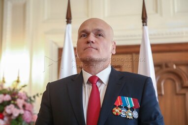 Президент шахматной Федерации Тюменской области Геннадий Шантуров. Торжественное вручение государственных наград шахматистам РФ – медалей в честь 100-летия министерства спорта России и золотых знаков Федерации шахмат России – в Центральном доме шахматиста имени Ботвинника.