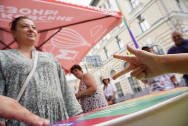 Чемпионат Москвы по игре «Камень, ножницы, бумага» на ул. Большая Никитская в Москве.