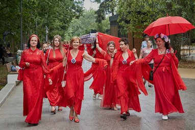 Флешмоб женщин в красных платьях «Сердце мира»