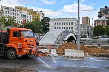 Ход работ по благоустройству набережных реки Яузы. Фото: Максим Мишин, пресс-служба мэра и правительства Москвы.