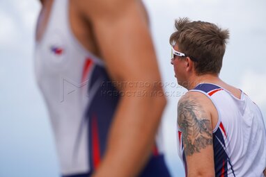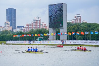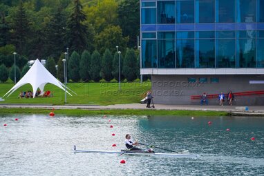 Олимпийский чемпион Сергей Федоровцев (слева), президент Федерации гребного спорта России, член исполкома Олимпийского комитета России, заслуженный мастер спорта, олимпийский чемпион Алексей Свирин (в центре) и олимпийский чемпион по гребле на байдарках-двойках Юрий Постригай (второй справа). Чемпионат России по академической гребле на Гребном канале.