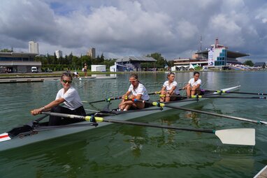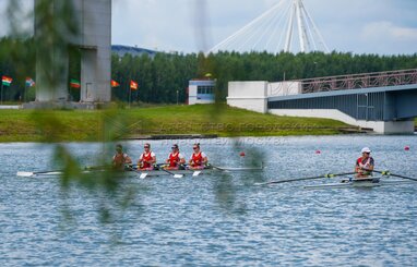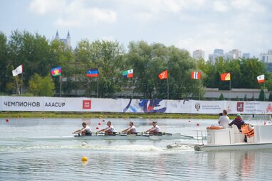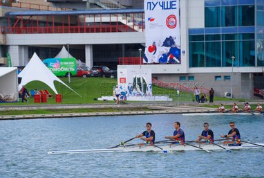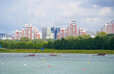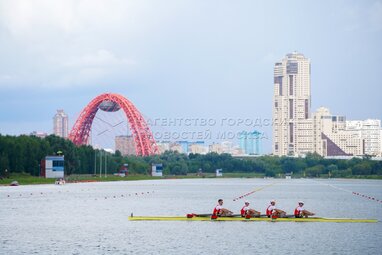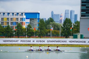 Директор Гребного канала Москва Олег Рудаков, президент благотворительного фонда содействию развития гребных видов спорта “Сделаем греблю лучше” Александр Агеев, помощник президента Олимпийского комитета России Андрей Минцев и президент Федерации гребного спорта России, член исполкома Олимпийского комитета России, заслуженный мастер спорта, олимпийский чемпион Алексей Свирин (слева направо). Чемпионат России по академической гребле на Гребном канале.