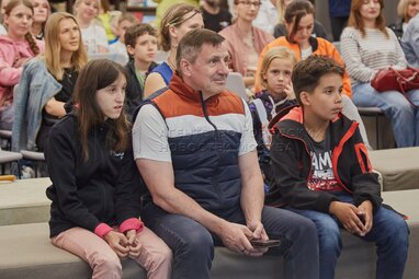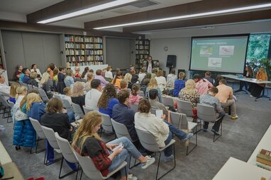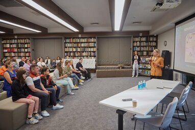 Генеральный директор Московского зоопарка Светлана Акулова (в центре) на интерактивной лекции «Окрыленная Москва. Как птицы помогают москвичам, а москвичи птицам».