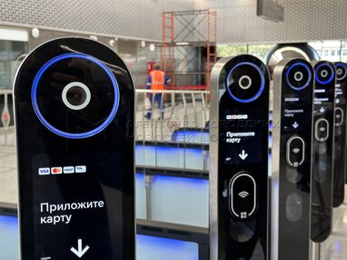 Новые цифровые турникеты на станции «Марьина Роща» Большой кольцевой линии метро.