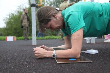 Командир спецназа «Сатурн» ГУФСИН России по Москве Борис Николаев вместе с москвичами выполнил нормативы комплекса «Готов к труду и обороне» проекта «ГТО в парках» столичного департамента спорта в парке «Дружба» на ул. Фестивальная.