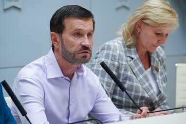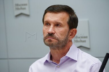 Депутат Мосгордумы Александр Семенников. Пресс-конференция «Готовимся к 80-летию Великой Победы: ЮЗАО» в пресс-центре Агентства городских новостей «Москва».