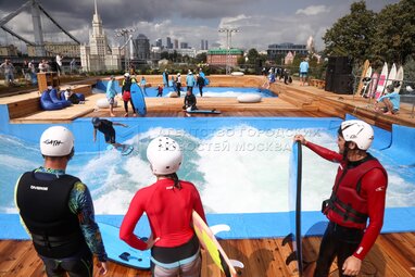 Зона серфинга в парке искусств «Музеон» в рамках форума-фестиваля «Территория будущего. Москва 2030»