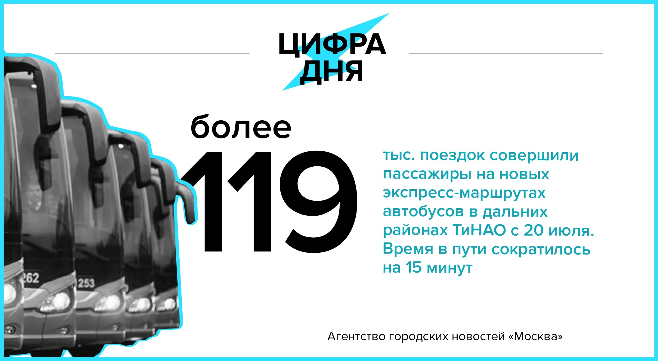 Цифра дня 12 августа: Более 119 тыс. поездок совершили на новых маршрутах в дальних районах ТиНАО.