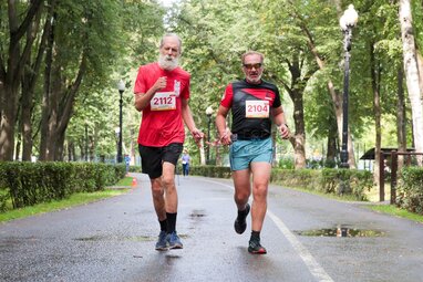 Экс-игрок сборной России по футболу, руководитель департамента устойчивого развития и социальной ответственности Российского футбольного союза Алексей Смертин (слева). Благотворительный забег «Без границ» в Измайловском парке.