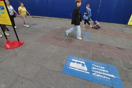 Напольная навигация для прохода пассажиров к платформам у Ленинградского вокзала