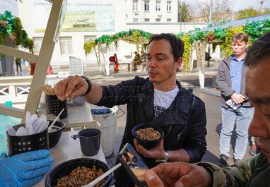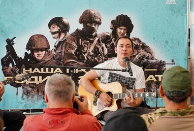 Музыкант Родион Газманов выступил в Едином пункте отбора на военную службу по контракту на ул. Яблочкова.