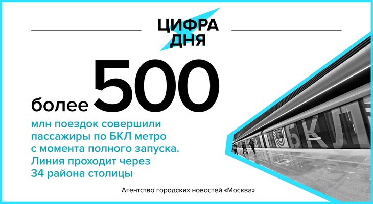 Цифра дня 16 августа: Более 500 млн поездок совершили пассажиры по Большой кольцевой линии (БКЛ) московского метро с момента ее полного запуска.