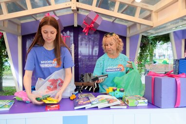 Сбор помощи участникам специальной военной операции (СВО) и жителям новых регионов РФ в «Домиках добра» в центре столицы в рамках форума-фестиваля «Территория будущего. Москва 2030».