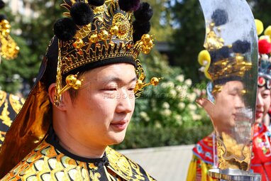 Чрезвычайный и полномочный посол КНР в РФ Чжан Ханьхуэй (справа по центру). Праздничные мероприятия в честь первого дня рождения панды Катюши в Московском зоопарке.