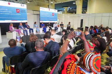 Секция «Успешные практики развития региональных и муниципальных отношений на примере Африканского континента» в рамках VI Международного муниципального форума стран БРИКС на площадке Центрального выставочного комплекса «Экспоцентр». Второй день работы форума.