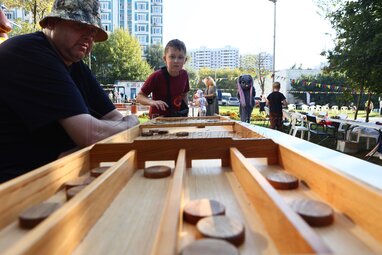 Член Общественного совета при министерстве транспорта России, инженер-изобретатель Алексей Кучмин (второй справа) принял участие в Большом спортивном празднике на спортивной площадке в районе Чертаново Южное.