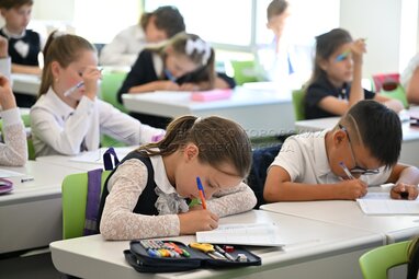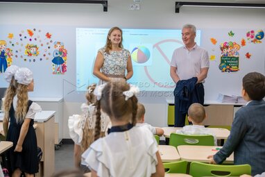 Мэр Москвы Собянин в День знаний открыл школу №1514 в Обручевском районе столицы, реконструированную по стандарту «Моя школа». Фото: Владимир Новиков, пресс-служба мэра и правительства Москвы.