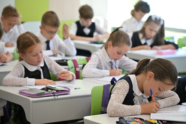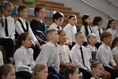 Учащиеся в спортзале. Открытие в День знаний школы №1514 в Обручевском районе столицы, реконструированной по стандарту «Моя школа». Фото: Владимир Новиков, пресс-служба мэра и правительства Москвы.