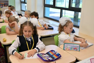 Открытие в День знаний школы №1514 в Обручевском районе столицы, реконструированной по стандарту «Моя школа». Фото: Владимир Новиков, пресс-служба мэра и правительства Москвы.