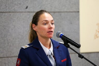 Начальник Службы внешних связей Московского метрополитена Мария Хильченко. Открытие выставки художников-иллюстраторов «Сказки Пушкина» на станции «Петровский парк» Большой кольцевой линии Московского метрополитена.