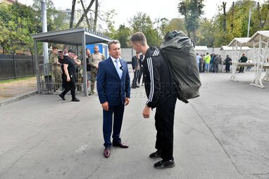 Депутат Госдумы Анатолий Выборный (слева) посетил столичный пункт отбора на военную службу по контракту.
