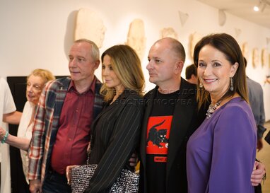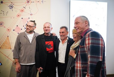 Актеры, заслуженные артисты РФ Мария Кнушевицкая (слева), Андрей Межулис (второй слева), Евгения Крюкова (третья слева) и Ольга Кабо. Сбор труппы Театра имени Моссовета перед новым театральным 102-м сезоном.
