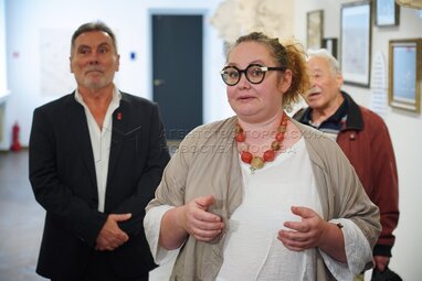 Актеры, заслуженные артисты Андрей Межулис и РФ Ирина Климова. Сбор труппы Театра имени Моссовета перед новым театральным 102-м сезоном.