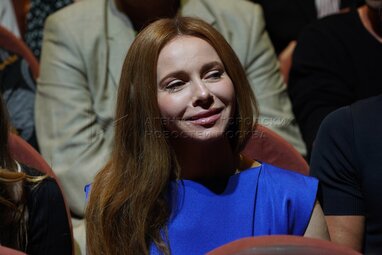 Актриса, заслуженная артистка РФ Евгения Крюкова. Сбор труппы Театра имени Моссовета перед новым театральным 102-м сезоном.