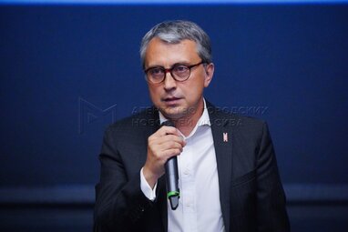 Директор театра Алексей Черепнев. Сбор труппы Театра имени Моссовета перед новым театральным 102-м сезоном.
