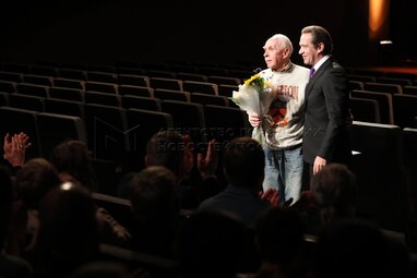 Актер Георгий Богадист во время сбора труппы актеров «Современника», Театра Олега Табакова и Театральной школы Олега Табакова.