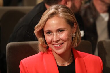 Актриса Алена Бабенко во время сбора труппы актеров «Современника», Театра Олега Табакова и Театральной школы Олега Табакова.