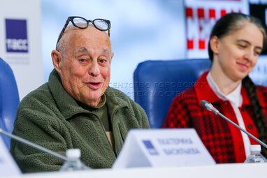 Актриса Екатерина Васильева и художественный руководитель театра «У Никитских ворот» Марк Розовский. Пресс-конференция, посвященная премьерам и новым проектам 41-го сезона театра «У Никитских ворот».