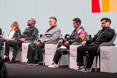 Кандидат технических наук, научный сотрудник Amazonia Design Лучана Дуарте (Бразилия), основатель Congo Fashion Week Мари-Франс Идикайи (Конго), директор Kenya Fashion Council/Nairobi Fashion Week Брайан Джеймс Кихиндас (Кения), креативный директор Fabrica Social Дульсе Мария Мартинес де ла Роса (Мексика) и вице-президент Тунисской ассоциация моды, генеральный директор SAFIRA MILANO Халима Хадир (Тунис) (слева направо) во время сессии «Не на словах, а на деле. Устойчивая мода и локальные решения». Открытие BRICS+ Fashion Summit в парке «Зарядье».