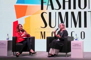 Основатель U Magazine Юрате Гураускайте (слева) и генеральный директор Дома моды Виктории Андреяновой – Виктория Андреянова во время сессии «История одного модного дома. Становление большого бренда». Открытие BRICS+ Fashion Summit в парке «Зарядье».