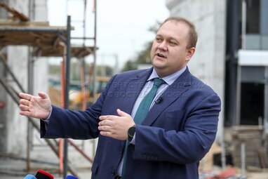 Заместитель начальника Московской железной дороги (по строительству) Павел Петровичев во время пресс-брифинга, посвященного строительству нового московского городского вокзала «Серп и Молот», развитию железнодорожной инфраструктуры и вводу новых инженерных объектов на участке Курский вокзал – Нижегородская Горьковского направления МЦД-4.