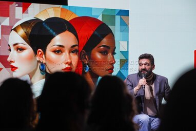 Генеральный директор AI Consortivm Пабло Юста во время сессии «Нейросеть и клиентский опыт. Как использовать AI в рeтейле». BRICS+ Fashion Summit в парке «Зарядье».
