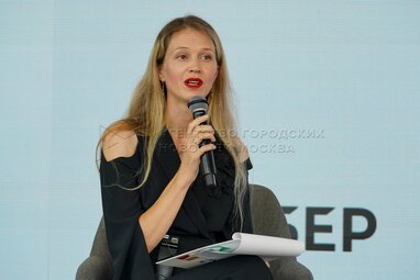 Художественный руководитель, основатель Белорусской палаты моды, Belarus Fashion Week Янина Гончарова во время сессии «Мода издалека. Кросс-обмены через международные мероприятия». BRICS+ Fashion Summit в парке «Зарядье».