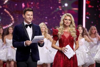 Теле- и радиоведущий Максим Привалов и телеведущая Ольга Жук. Финальное шоу конкурса красоты «Мисс Россия 2024» в концертном зале Barvikha Luxury Village.