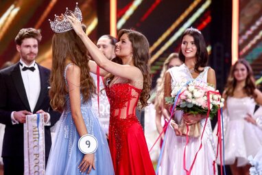 Первая вице-мисс Россия 2024 Ирина Миронова (Тольятти) (слева) и мисс Россия 2024 Валентина Алексеева (Республика Чувашия) (в центре). Финальное шоу конкурса красоты «Мисс Россия 2024» в концертном зале Barvikha Luxury Village.