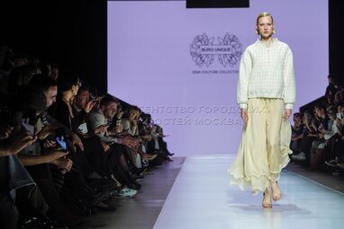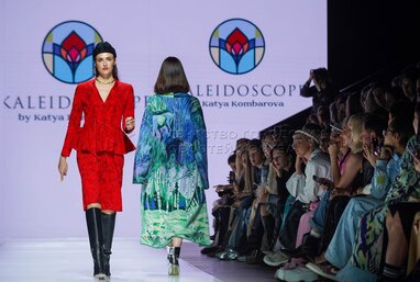 Показ коллекции бренда Maison Kaleidoscope by Katya Kombarova (Москва). Московская неделя моды в центральном выставочном зале «Манеж».