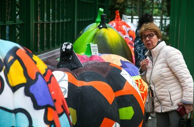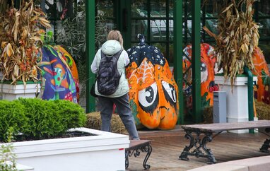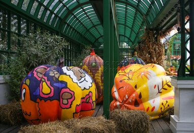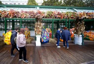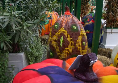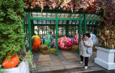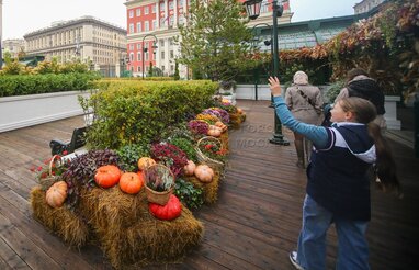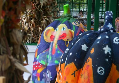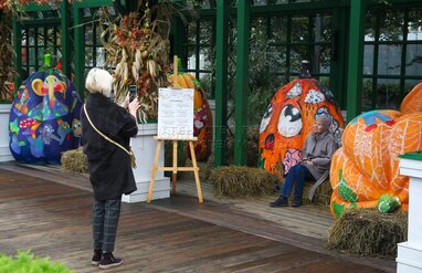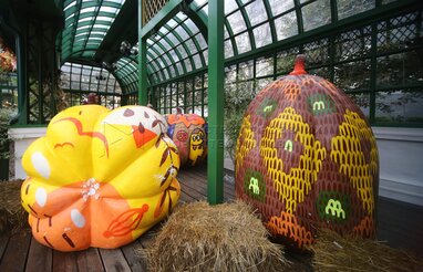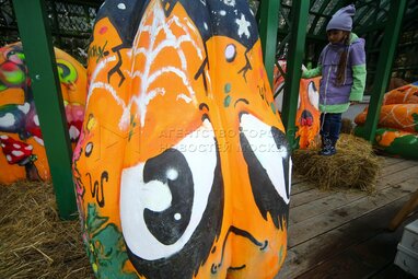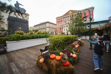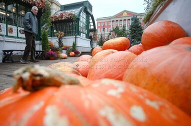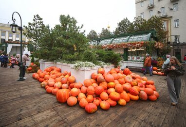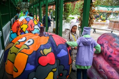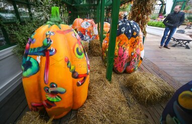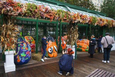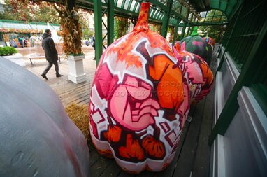 Выставка расписных тыкв в стиле стрит-арт на площадке фестиваля «Золотая осень» на Тверской площади.